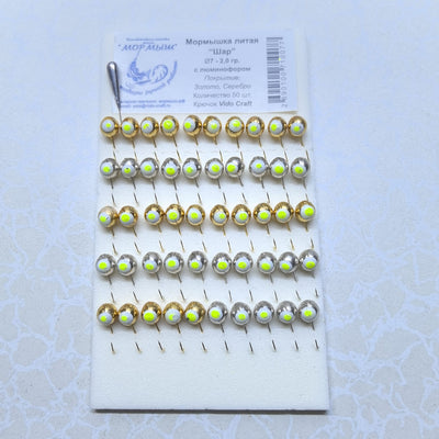 Набор мормышек "Шар ф7" золотые Фосфор 50шт/уп -2.0g