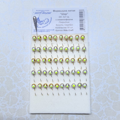 Набор мормышек "Шар ф4" золотые Фосфор 50шт/уп -0.7g