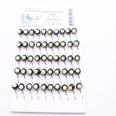 Набор мормышек "Шар ф7" черный. Фосфор 50шт/уп -2.0g